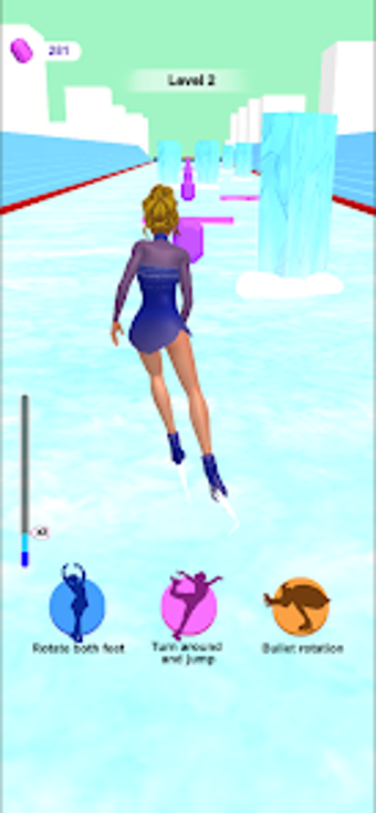 Oyuncular, bitiş çizgisine ulaşırken parlayan taşlar toplayarak yeni kıyafetlerin kilidini açabilir ve buz pateni becerilerini geliştirebilirler. Çeşitli döngü, dönüş, atlama ve dönen mermiler gibi etkileyici hareketleri içeren oyun, oyuncuların reflekslerini ve zamanlamalarını test eder. Canlı buz ortamı ve akıcı animasyonlar, oyunculara sürükleyici bir buz pateni deneyimi sunmaktadır.